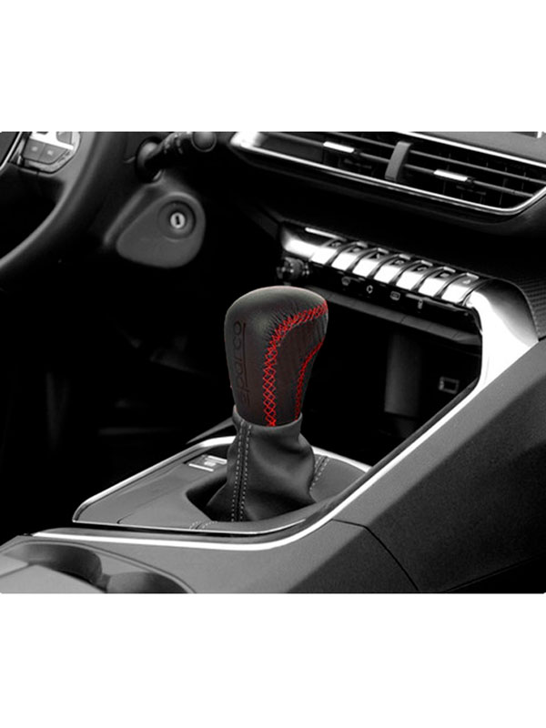 🏎️ Perilla de cuero con costuras de hilo rojo